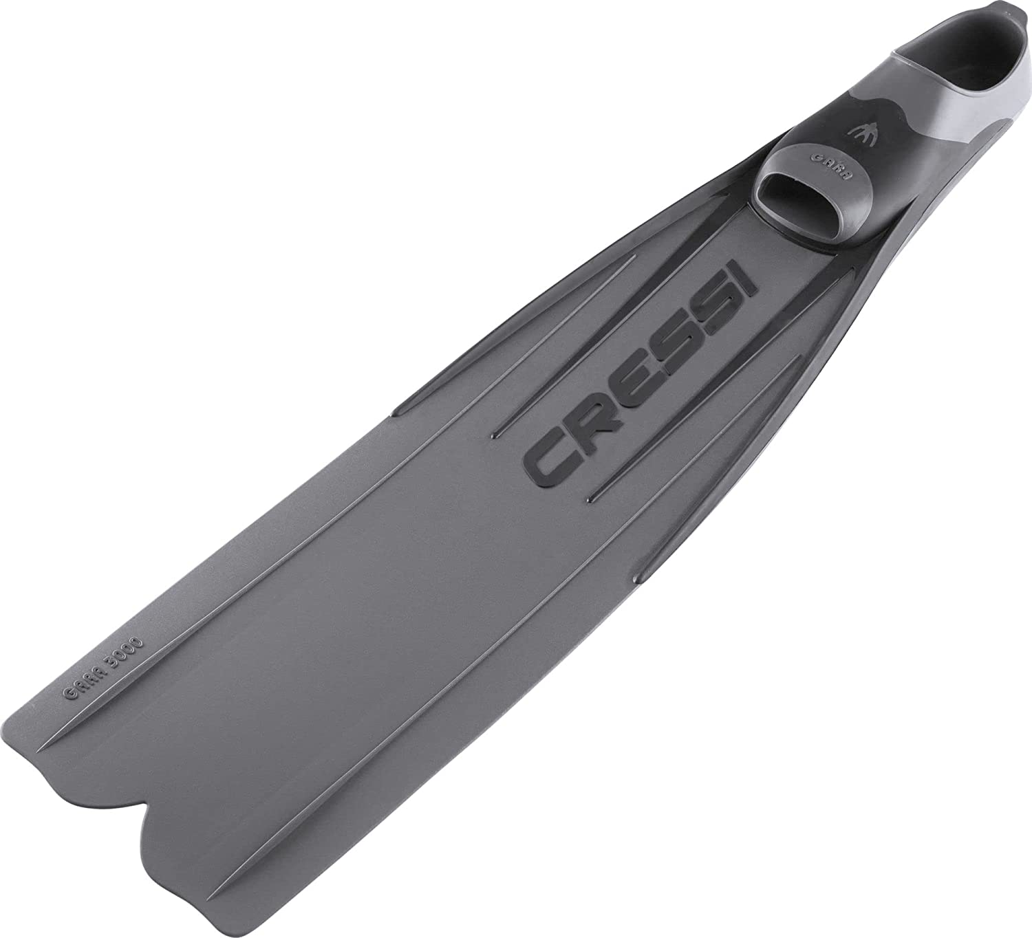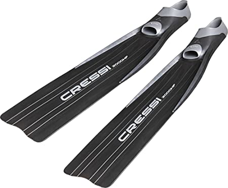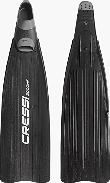 - Polipropileno alto módulo: un material heredado de la apnea que tiene como principal características la rapidísima transmisión de la energía aplicada. Se aplica a la pala y zona interna del sándwich de la suela. Es muy nervioso y reactivo y facilita un aleteo muy ágil y un avance raudo. Tiene una relación esfuerzo-rendimiento netamente favorable y una gran resistencia a la rotura hasta el punto de que Cressi lo garantiza de por vida para uso deportivo.La fusión molecular de los materiales proporciona una transmisión del esfuerzo radicalmente superior a la que se produce en la clásica configuración “intercambiable”.Cada talla (4 en total) cuenta con moldes propios de calzante y pala, de tal forma que las prestaciones y el nivel de esfuerzo requerido de cada talla son totalmente proporcionales.