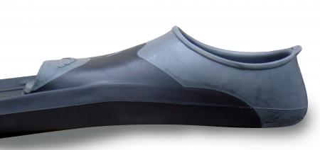 - Elastómero flexible-termocaucho-(color gris) dureza shore 50º: se aplica al calzante y las zonas que requieren flexibilidad y elasticidad, ya que influyen en el confort del buceador. Puntera del calzante, interior de la suela y zona del empeine en contacto con el tobillo.