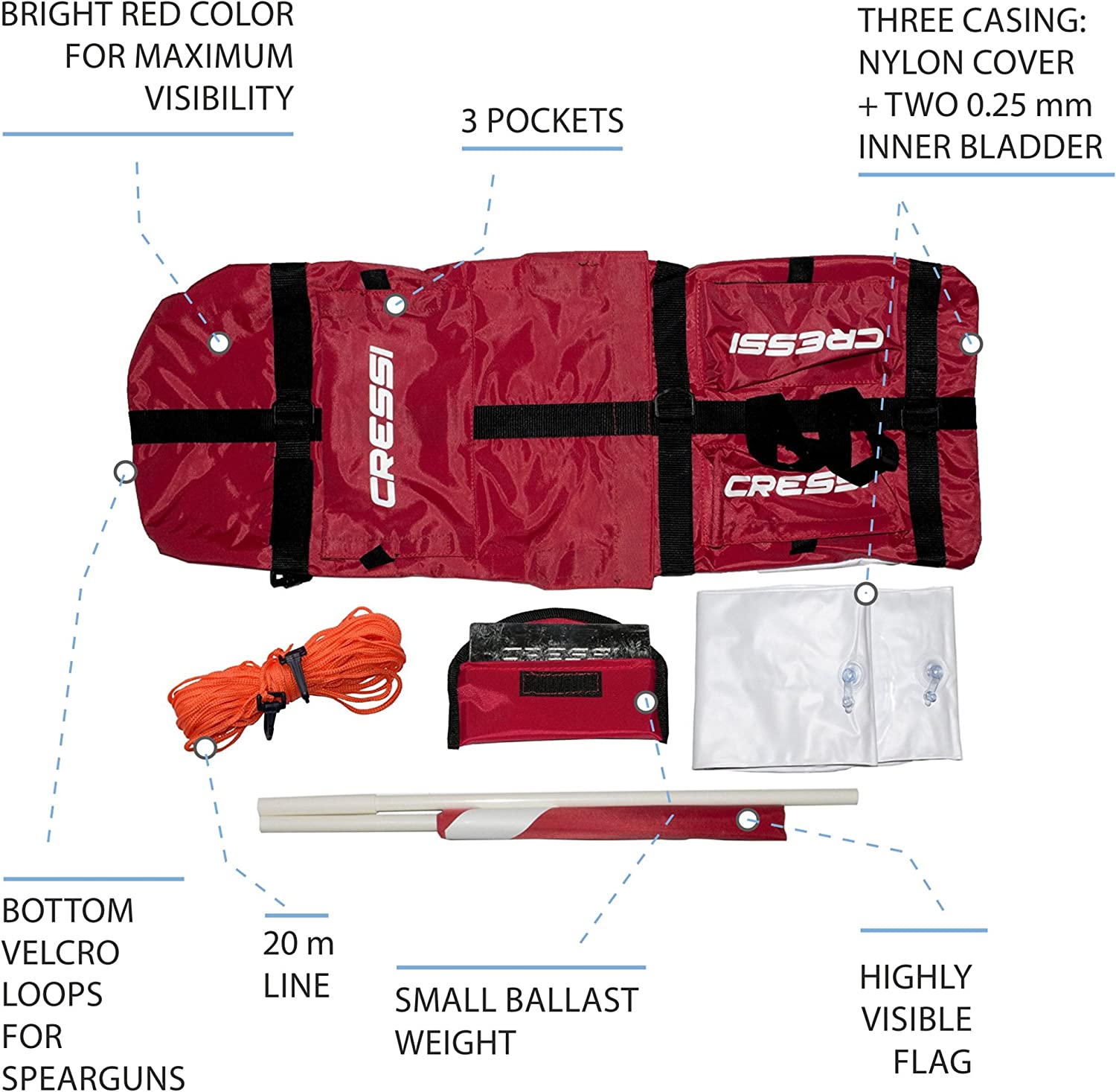 Nueva boya-plancha con capacidad para 3 fusiles. 3 compartimentos portaobjetos. Recubrimiento en nylon 420D en rojo flúor que la hace muy visible. Bandera de 30 x 30cm incluida. Dimensiones 80 cm x 30 cm.