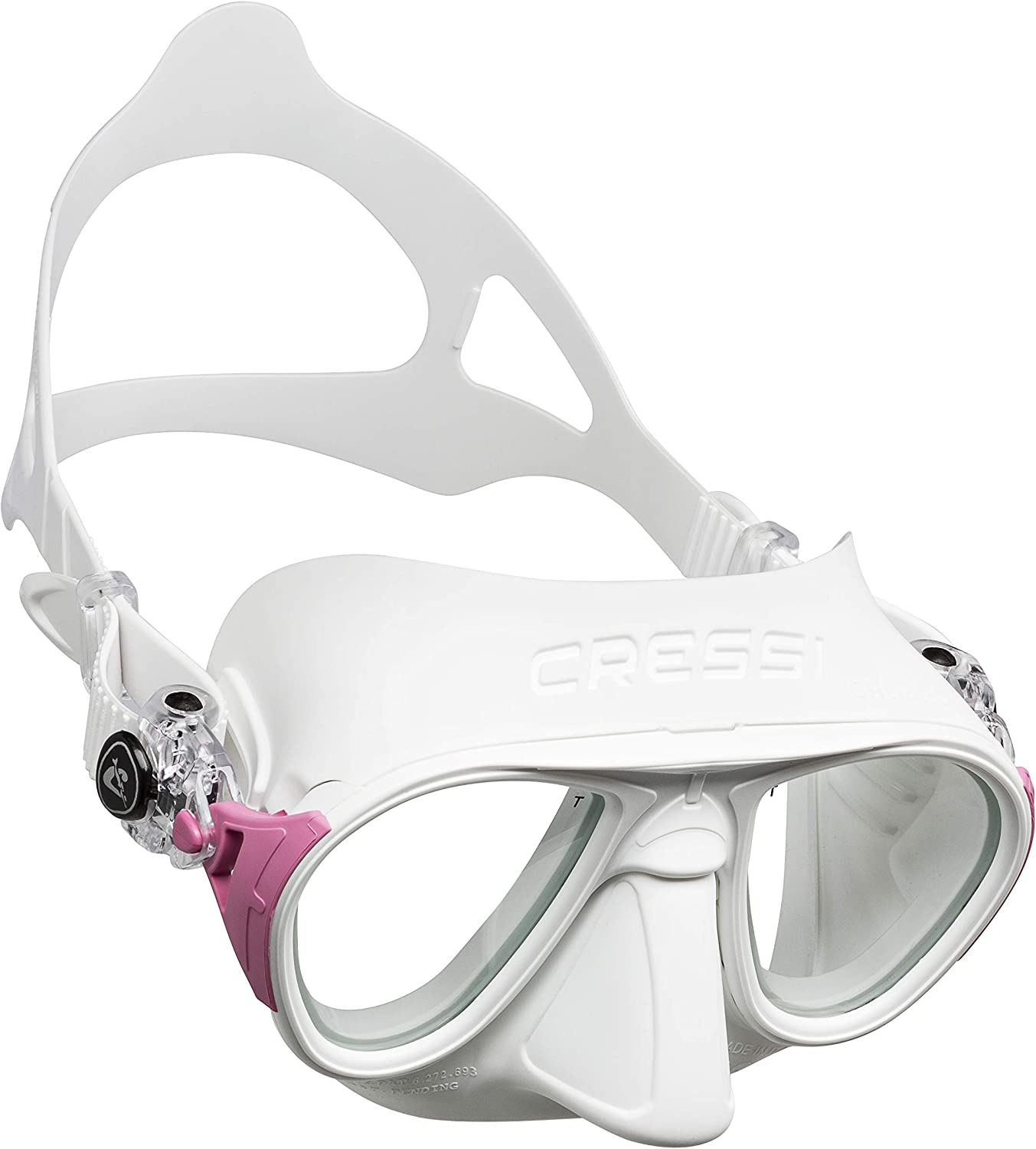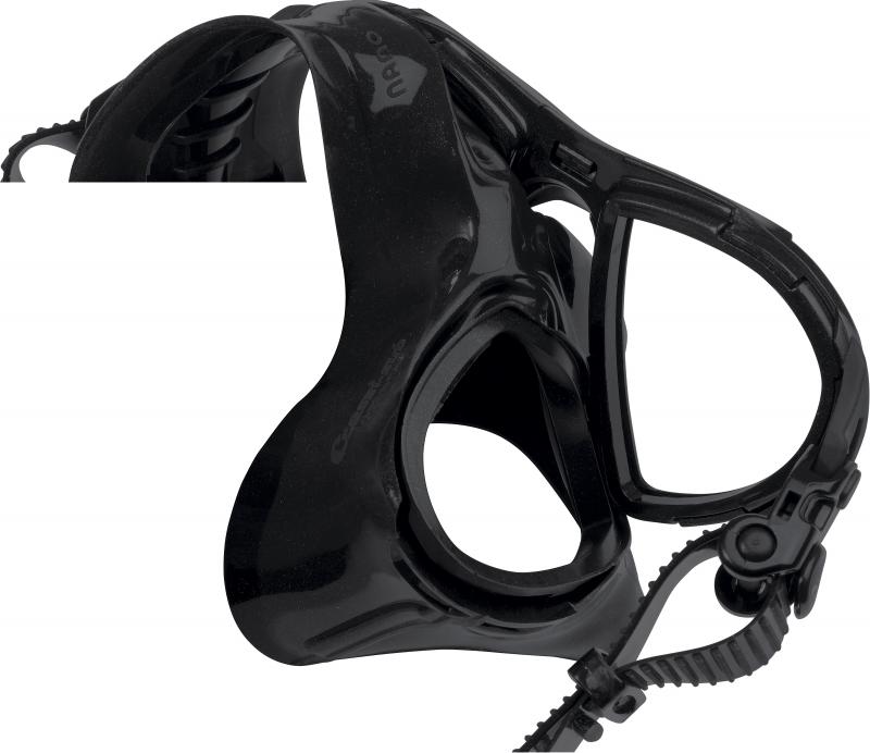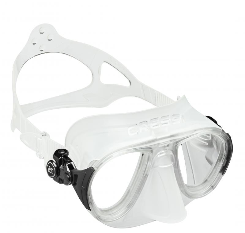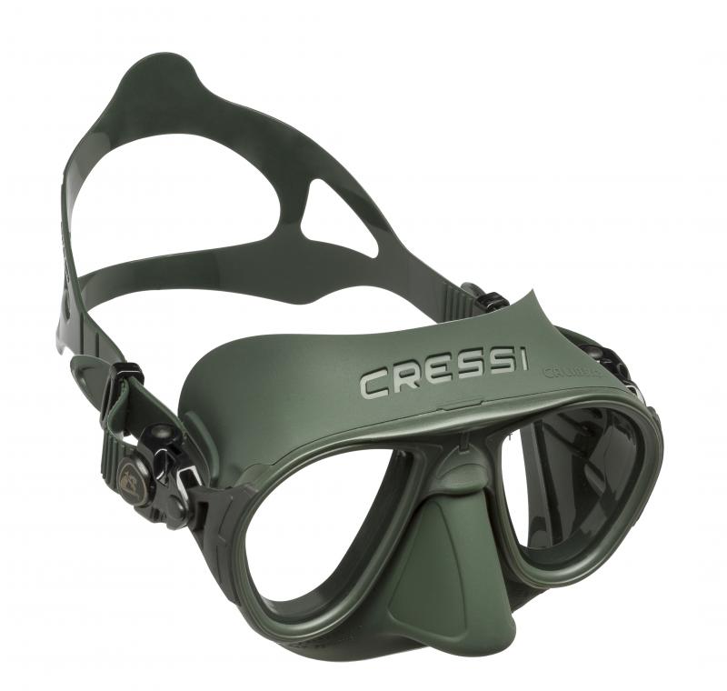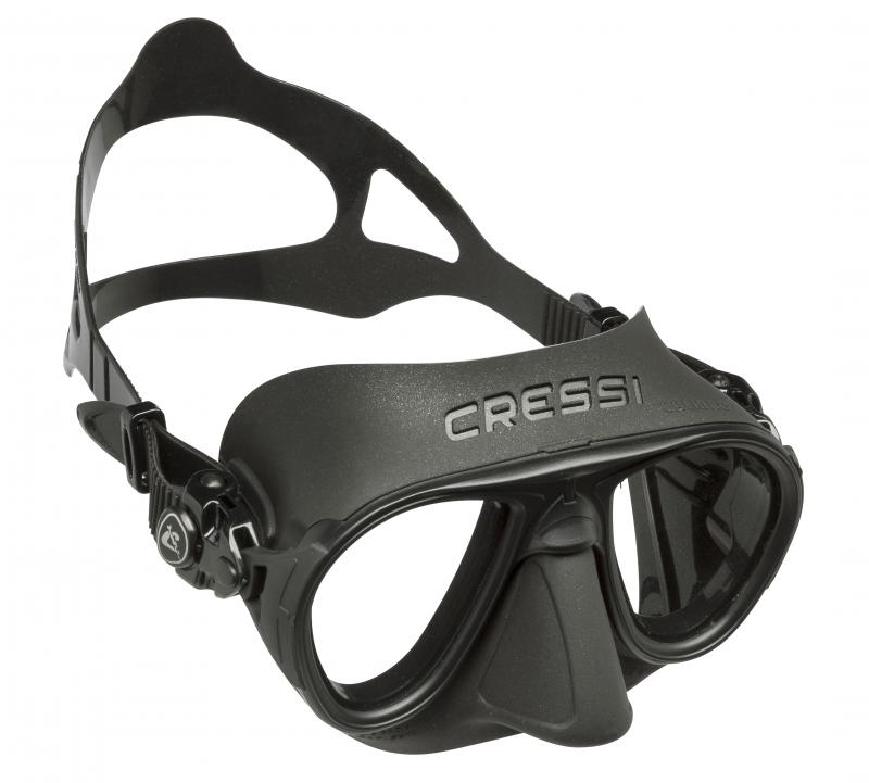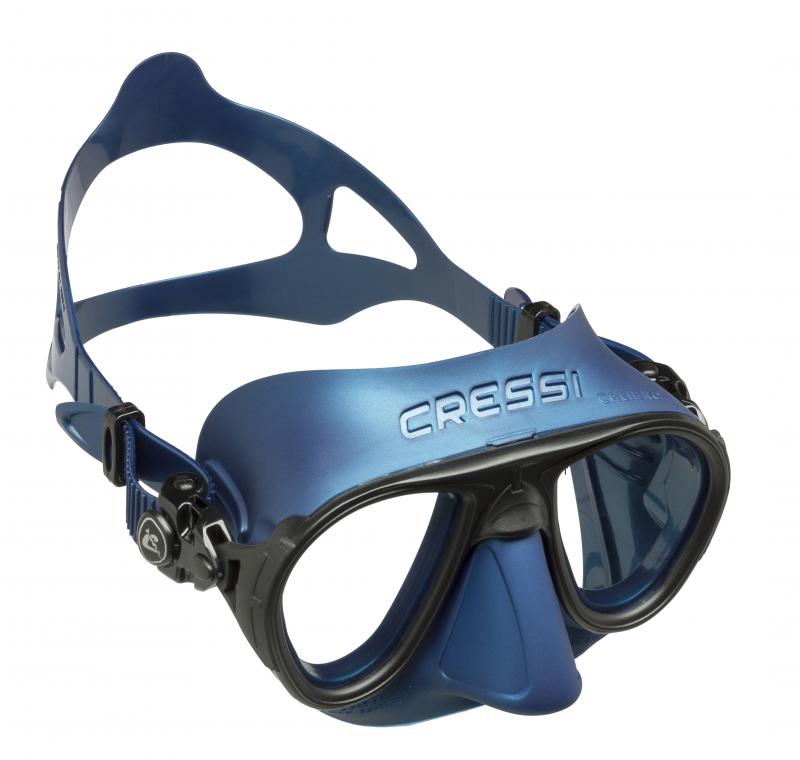La máscara Cressi Calibro es polivalente para pesca submarina, apnea, buceo y esnórquel. Diseño extremadamente hidrodinámico y compacto. Volumen interno mínimo, no requiere de compensación intencional. Una sutil membrana de silicona situada alrededor de la nariz actúa como deflector para que el aire caliente que parte de la nariz al compensar la presión exterior no se dirija directamente a los cristales reduciendo la tendencia al empañamiento habitual en máscaras  de volumen reducido. Hebillas giratorias pivotantes en goma ancladas directamente en la montura. Lentes inclinadas. Construcción exclusiva que reduce los espesores de la montura a la mínima expresión y los integra en el facial.