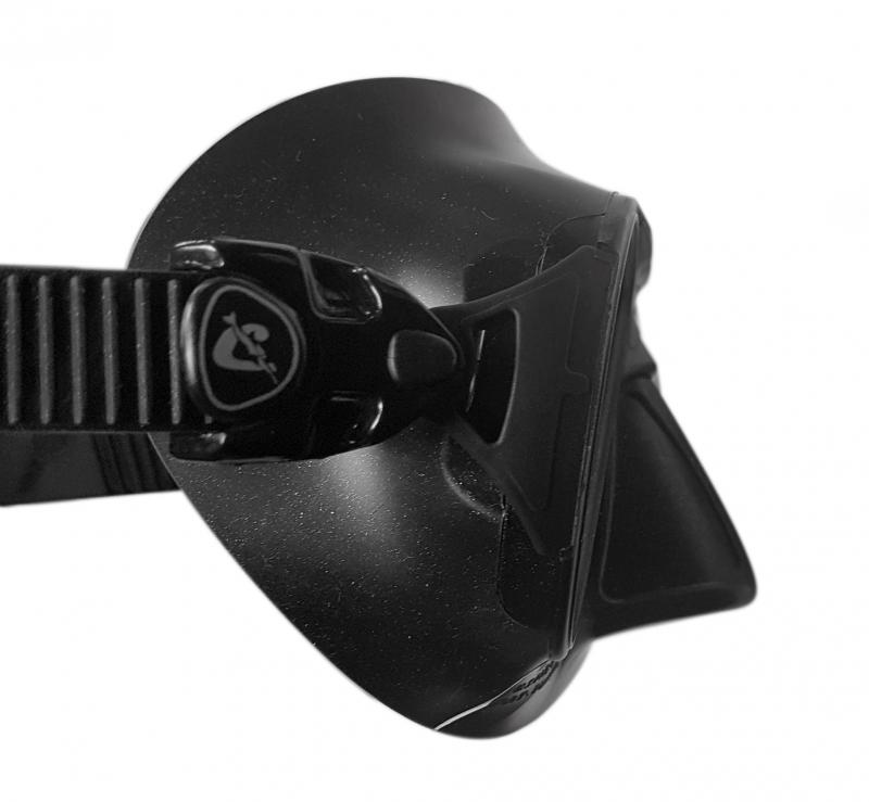 Las hebillas, ancladas en la montura para una óptima estabilidad de la máscara y una tensión siempre a determinar por el usuario, son completamente plegables y basculantes en todos los sentidos. Por lo tanto, la posibilidad de rotura es casi imposible. Este tipo de anclaje mejora también la estabilidad de la máscara, ya que la tensión de la tira se produce sobre un elemento rígido y los movimientos del tubo no afectan al facial.