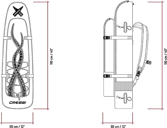 • Idónea para un completo equipo añadiendo, incluso, las más largas aletas de buceo o apnea